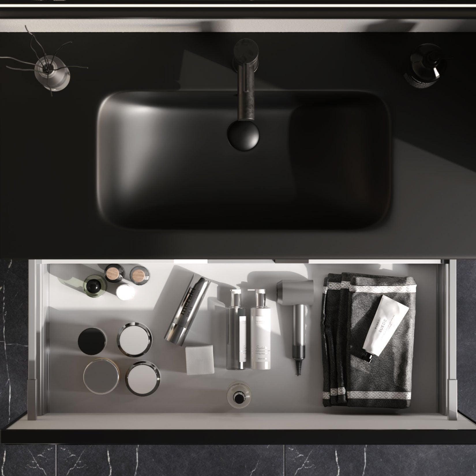 The drawers are equipped with a soft-close mechanism that allows smooth, silent, and controlled closing. This system prevents slamming, reduces noise, and protects the drawer structure, extending the overall lifespan of the cabinet and enhancing user comfort.