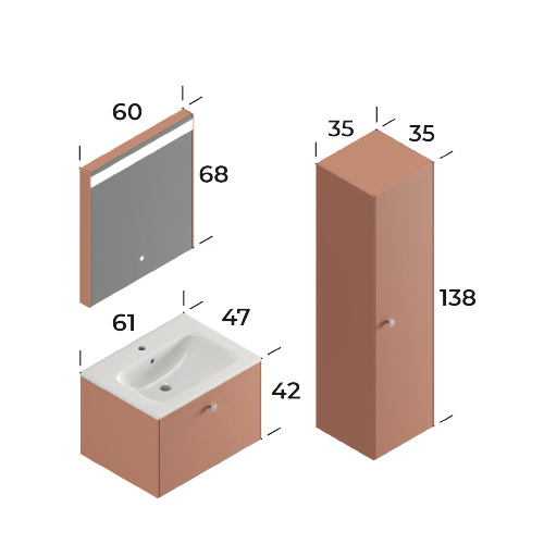 Nova Matt Shell Pink 60 cm Bathroom Cabinet Set