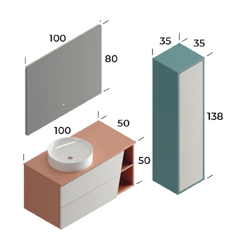 Riva Matt Brick Red / Slate Cream 100 cm Bathroom Cabinet Set