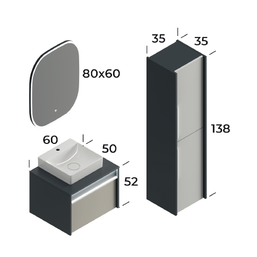 Royal Matt Antracite / Matt Silk Grey 60 cm Bathroom Cabinet Set