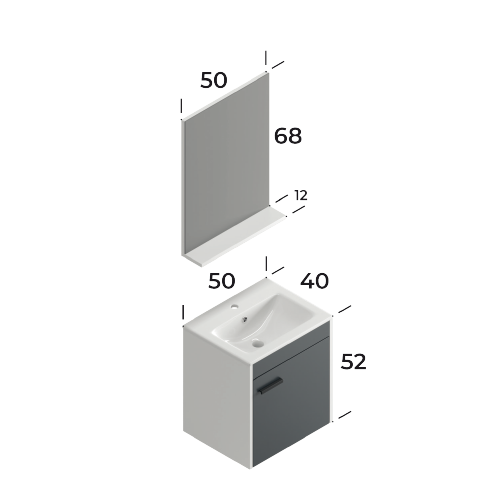 Tika Wood Baroq / Matt Antracite 50 cm Bathroom Cabinet Set
