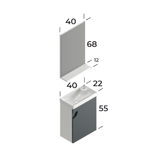 Mini Wood Baroq / Matt Antracite 40 cm Bathroom Cabinet Set